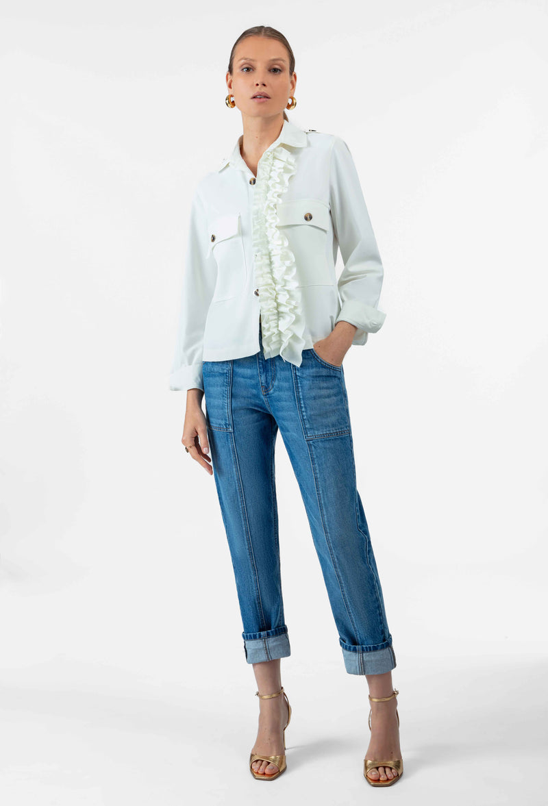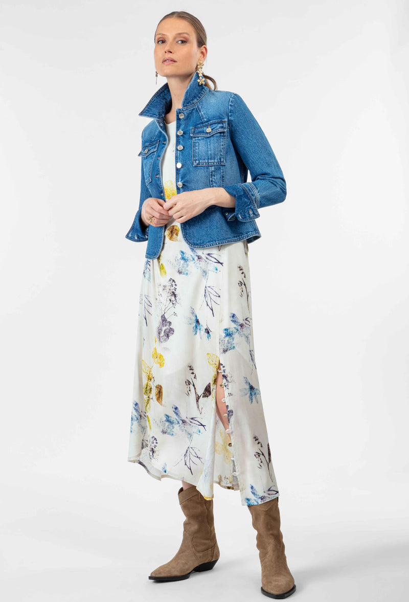 Le denim ne se limite pas au pantalon. INDIES décline cette toile intemporelle dans d’autres pièces fortes du vestiaire féminin :