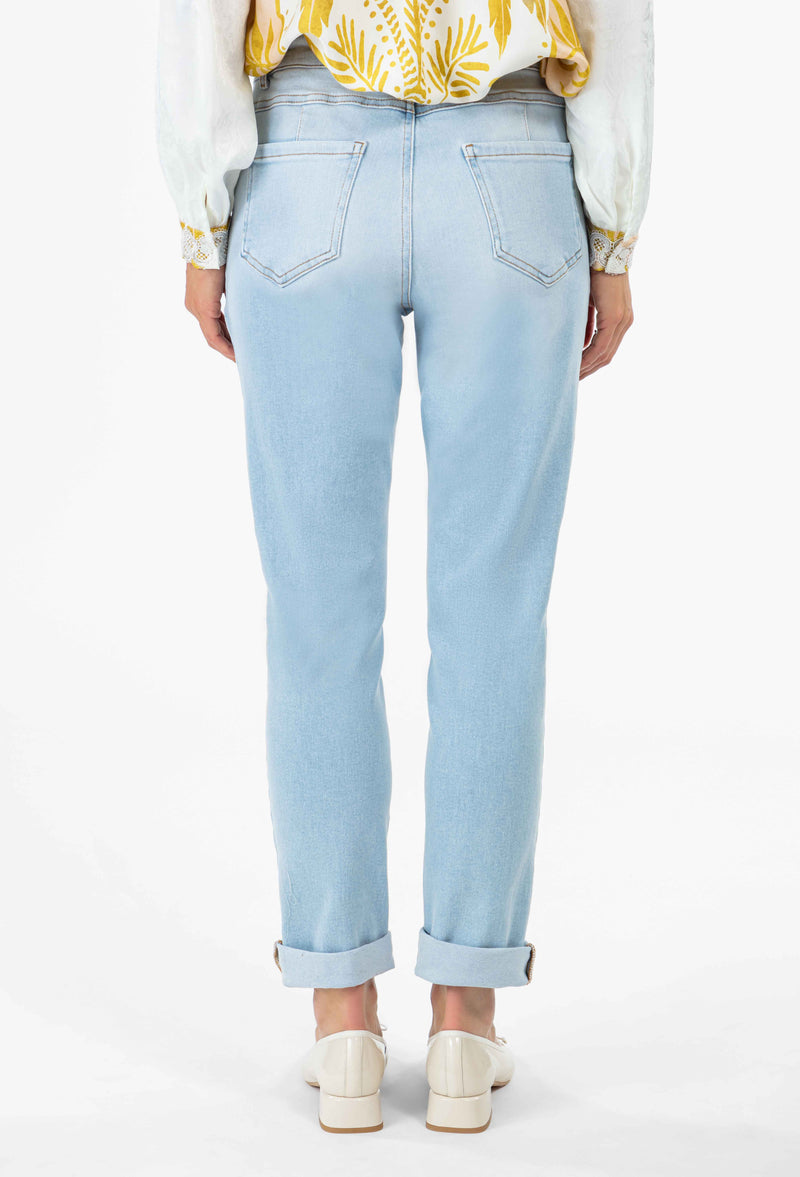 Le jean boyfriend / mom, plus décontracté, séduit par son confort et son allure effortless. Idéal pour un style casual chic, il s’associe parfaitement à une chemise ou un blazer.