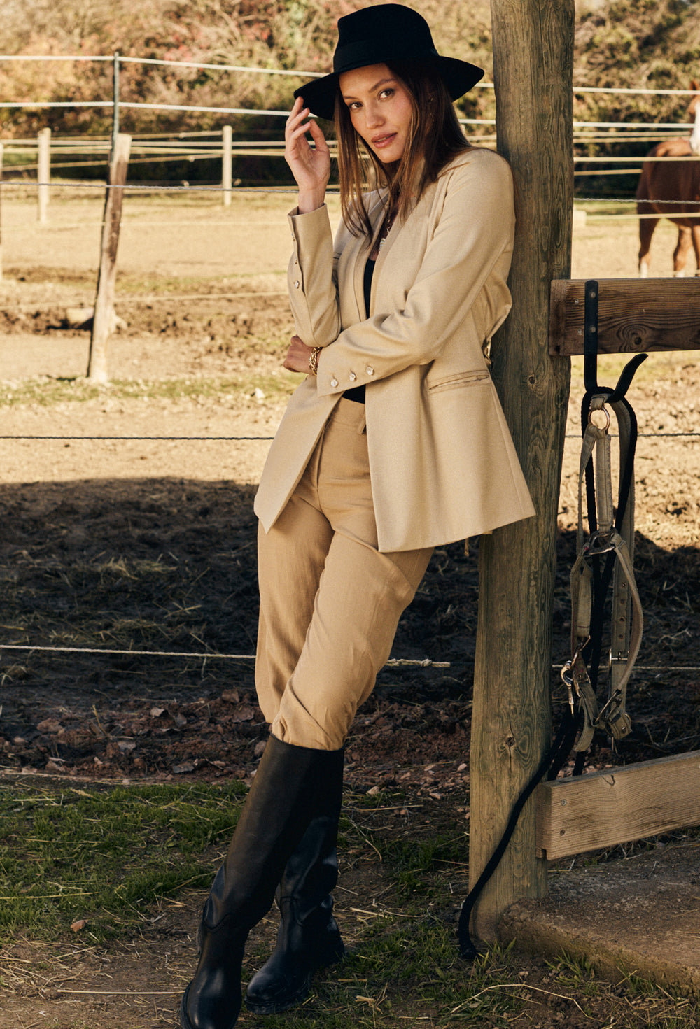 The model is 1.74m tall and wears a size 36.