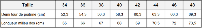 La mannequin mesure 1,71m et porte une taille 36.