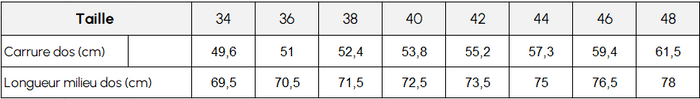 La mannequin mesure 1,71m et porte une taille 36.
