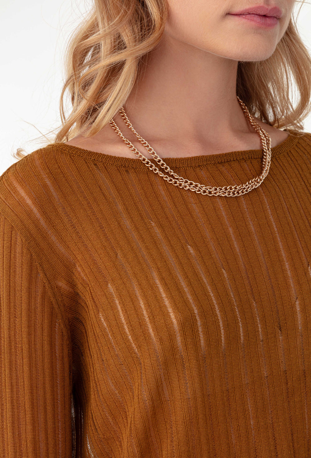 Fluid and light, you will love the CAEL knit with its versatile color and its slightly transparent seam pattern.