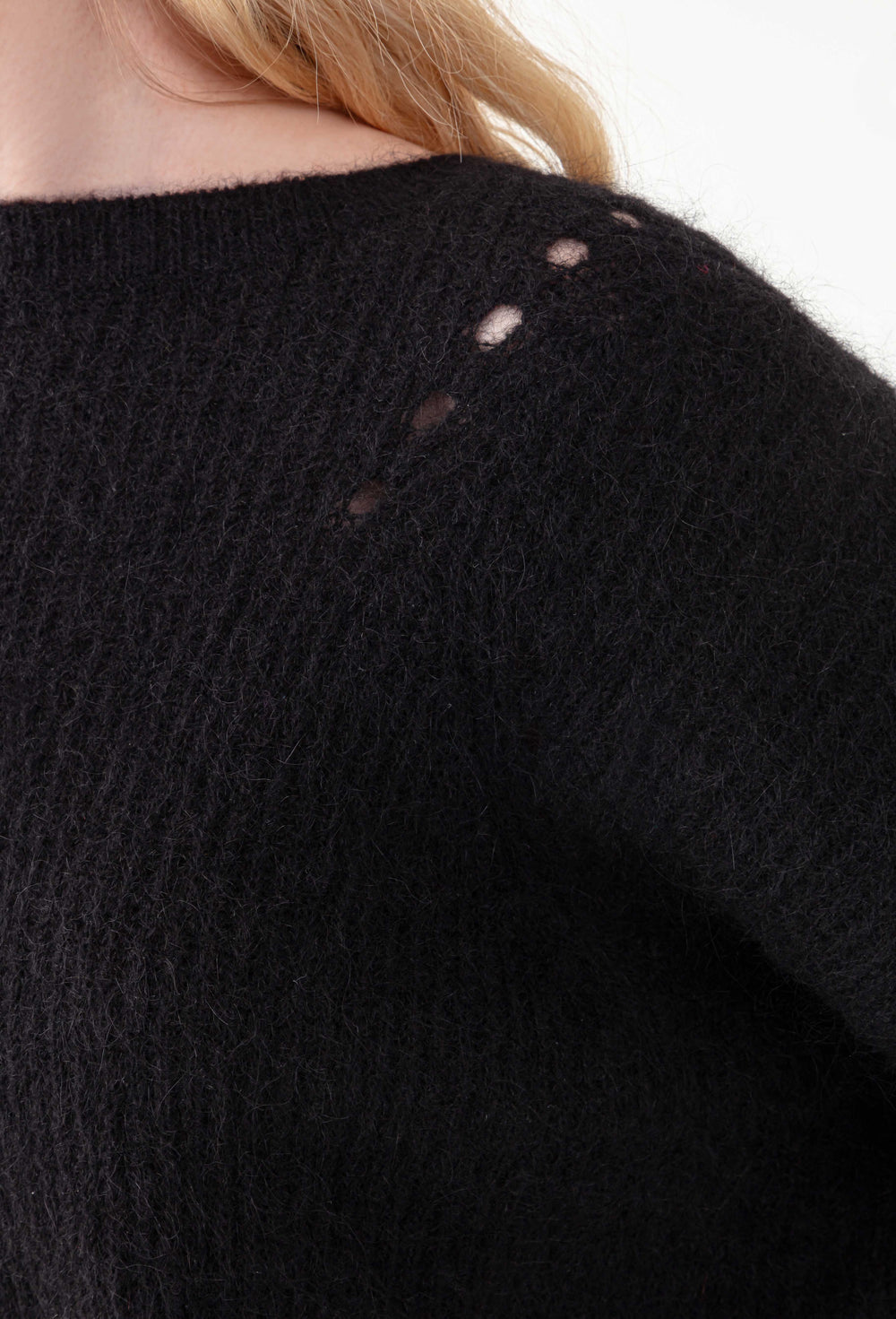 The VANESSA sweater seduces with its oversized cut and its light knit with a fluffy finish, enhanced with delicate openwork stitches.