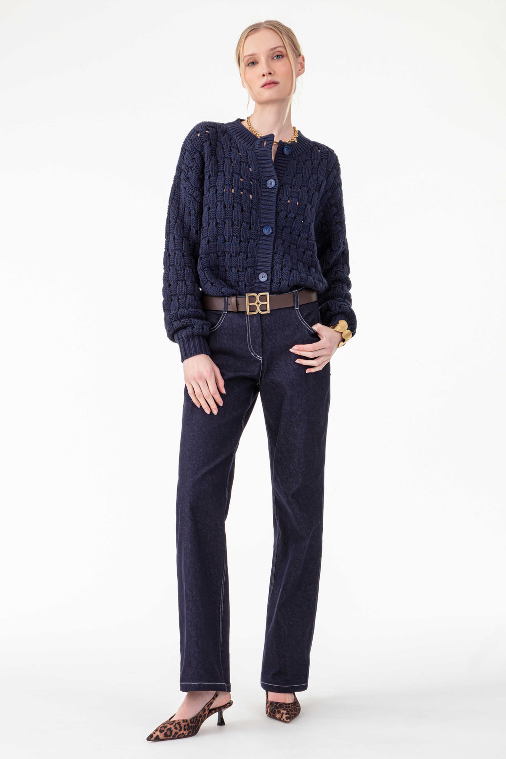 The model is 1.74m tall and wears a size 36.