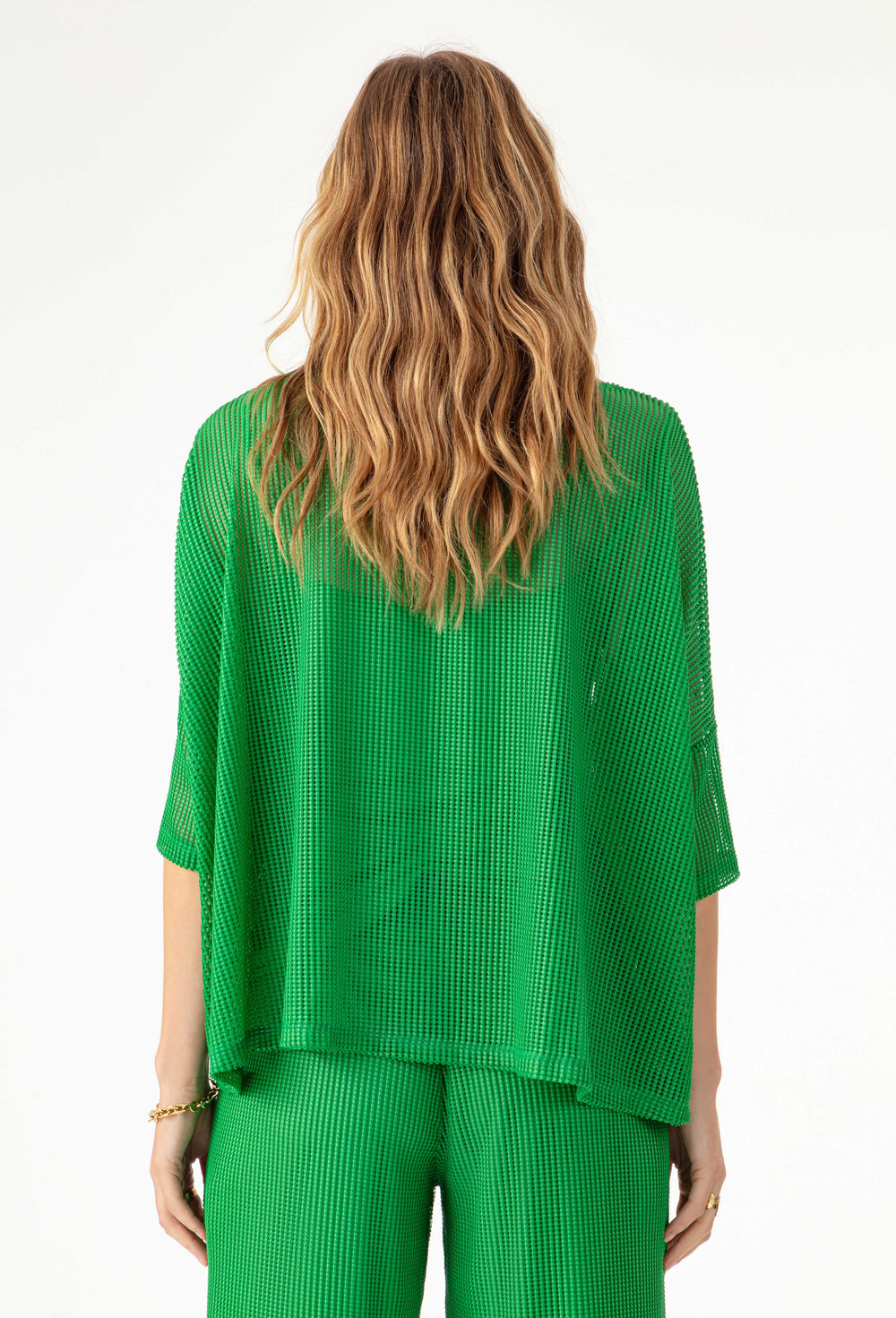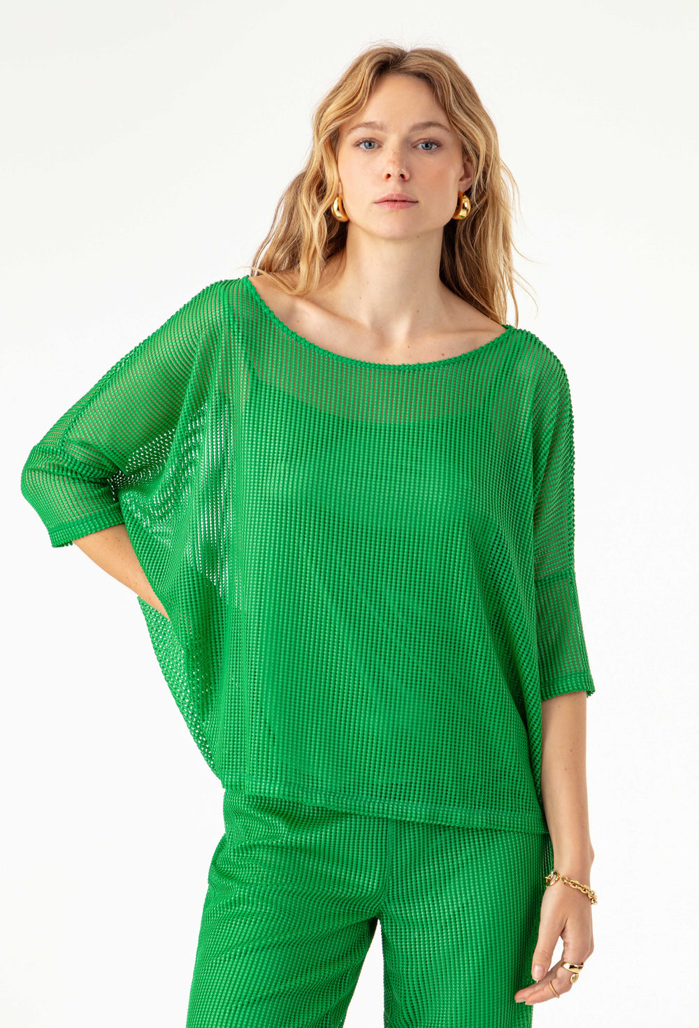 Top Ivana plays with layering, combining a lacquered mesh top with a voile camisole, for a contemporary and subtly graphic silhouette.