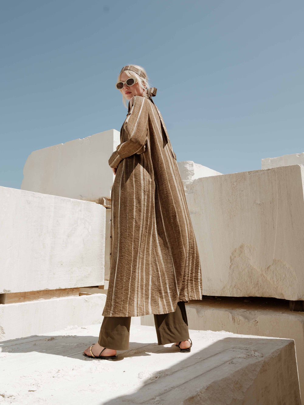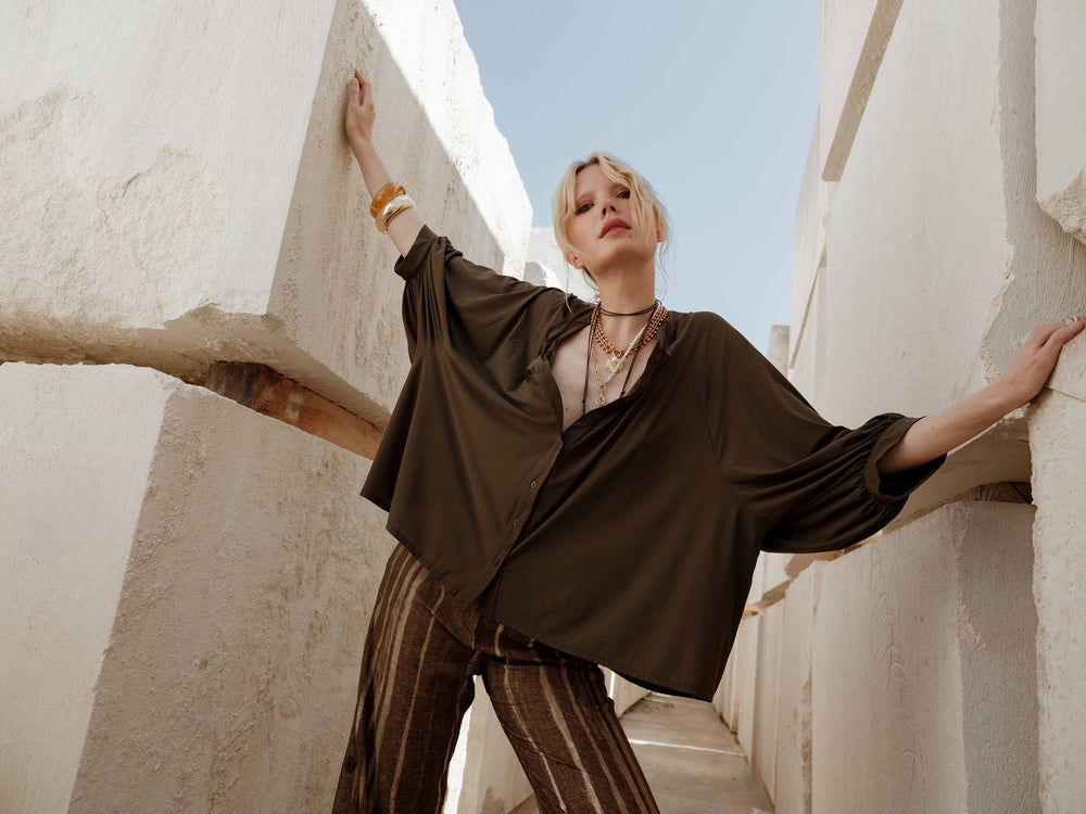 Les lignes se dessinent, franches et libres. Les coupes s'ancrent, mais laissent le corps respirer. C'est l'instant de l'extraction : celui où l'on puise dans la matières pour faire surgir une silhouette neuve, sculptée par la lumière et le vent