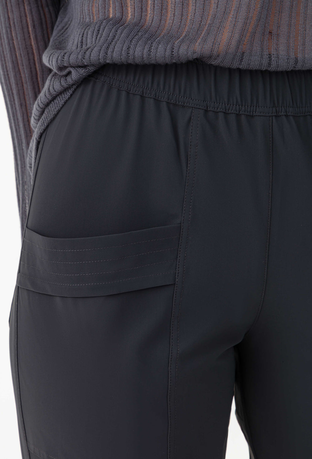 - Détail de surpiqûres sur poches paniers et cuisses