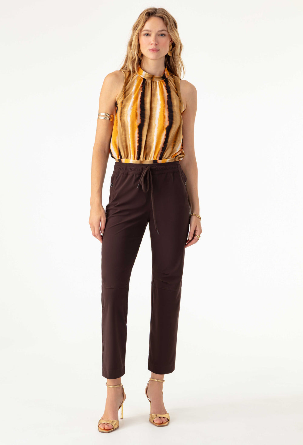 Confort absolu avec le pantalon BRAD blanc en jersey technique marron.