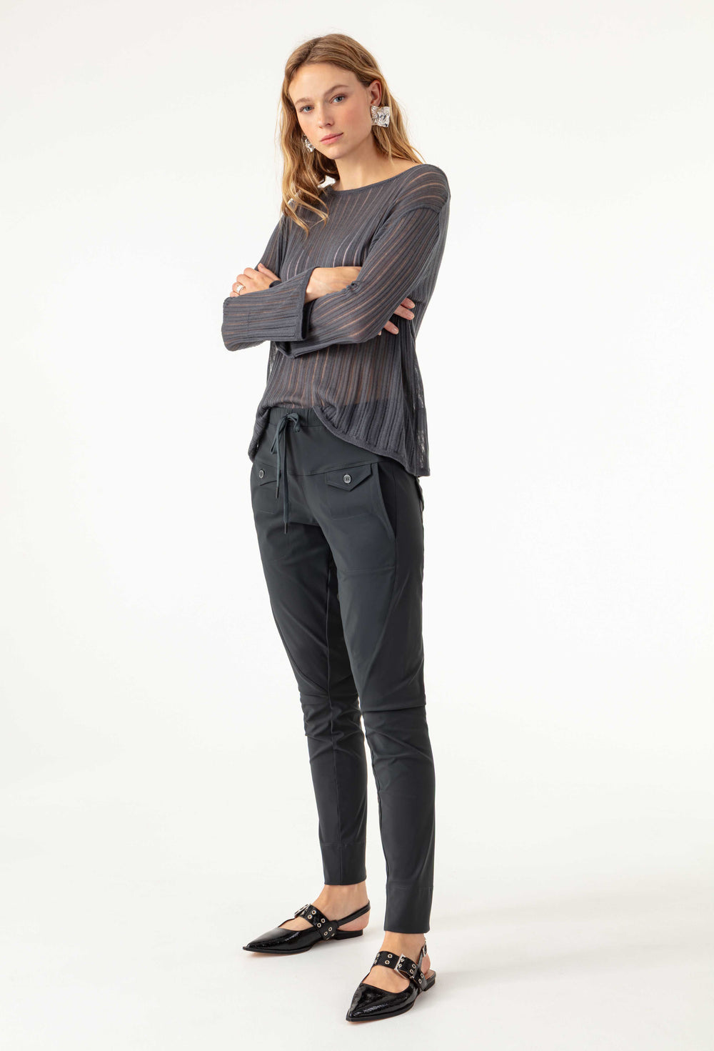 - Pantalon fluide esprit casual en jersey technique coloris acier