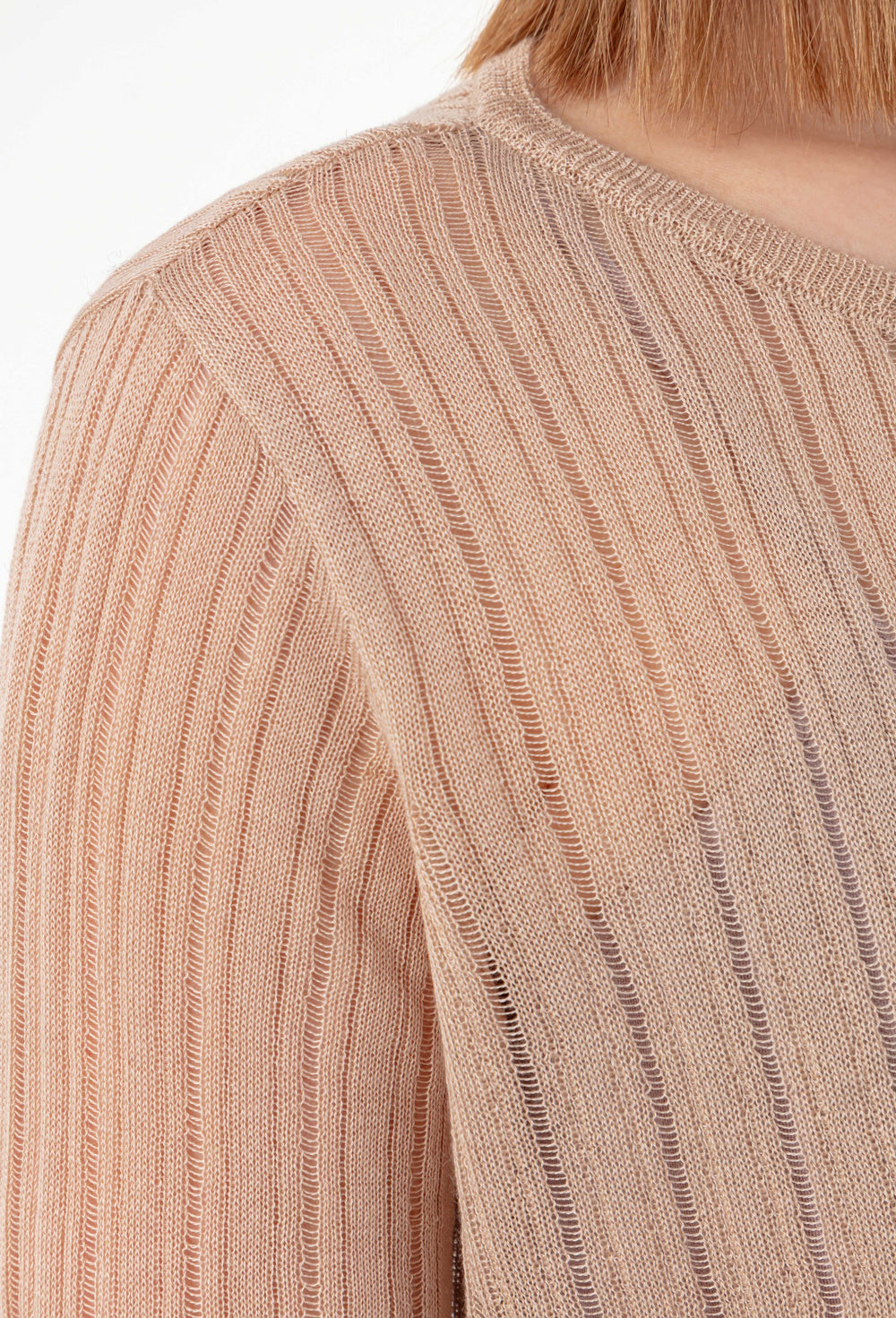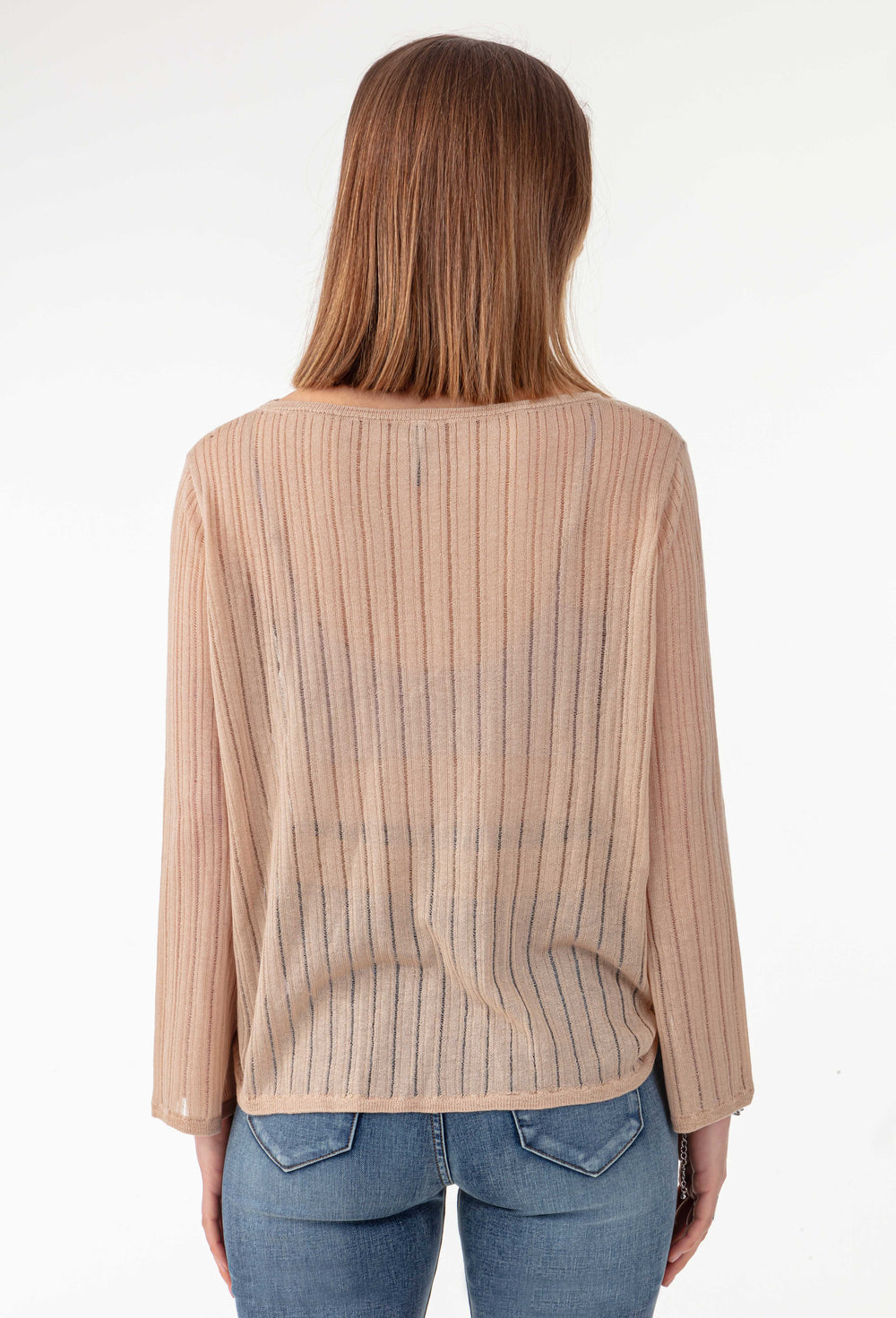 Fluide et légère vous allez adorer la maille CAEL avec sa couleur flamboyante et son jeu de couture légèrement transparente.