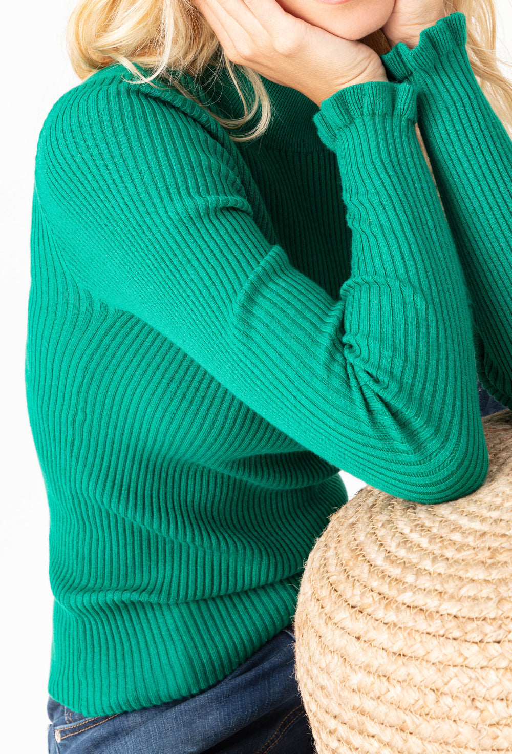 Pull chaussette Joseph en maille côtelée, coloris vert
