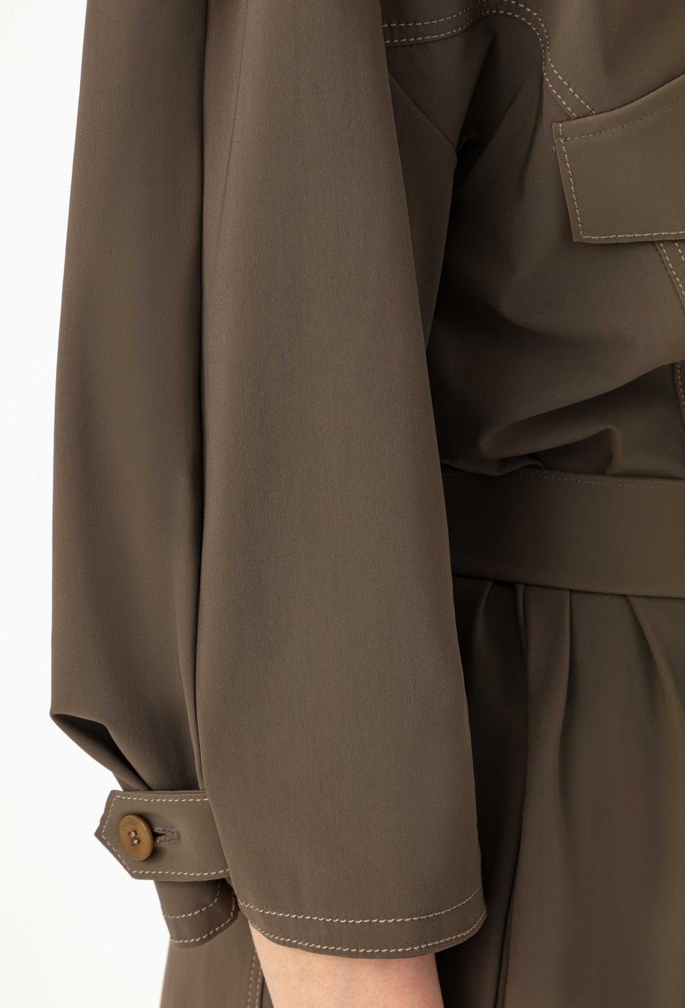 La mannequin mesure 1,73m et porte une taille 36.
