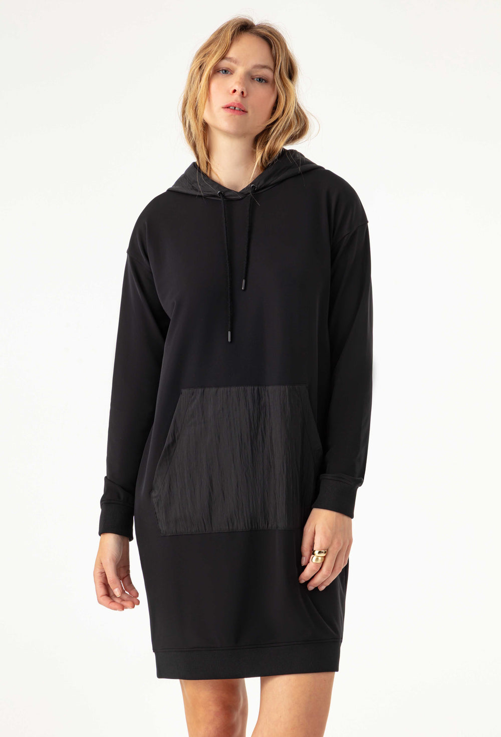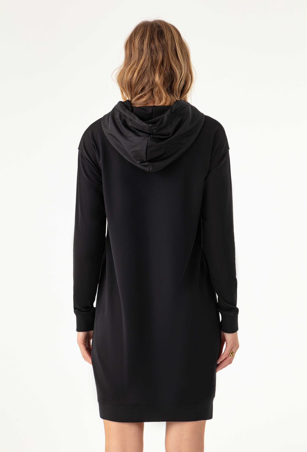 La mannequin mesure 1,73m et porte une taille 36.