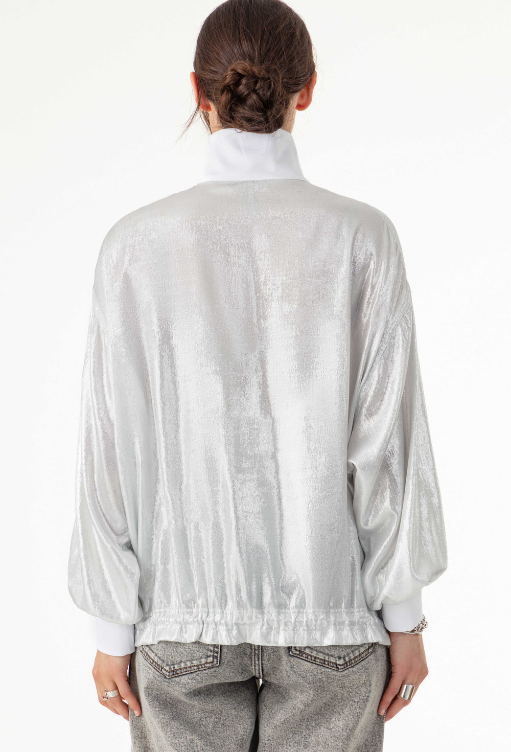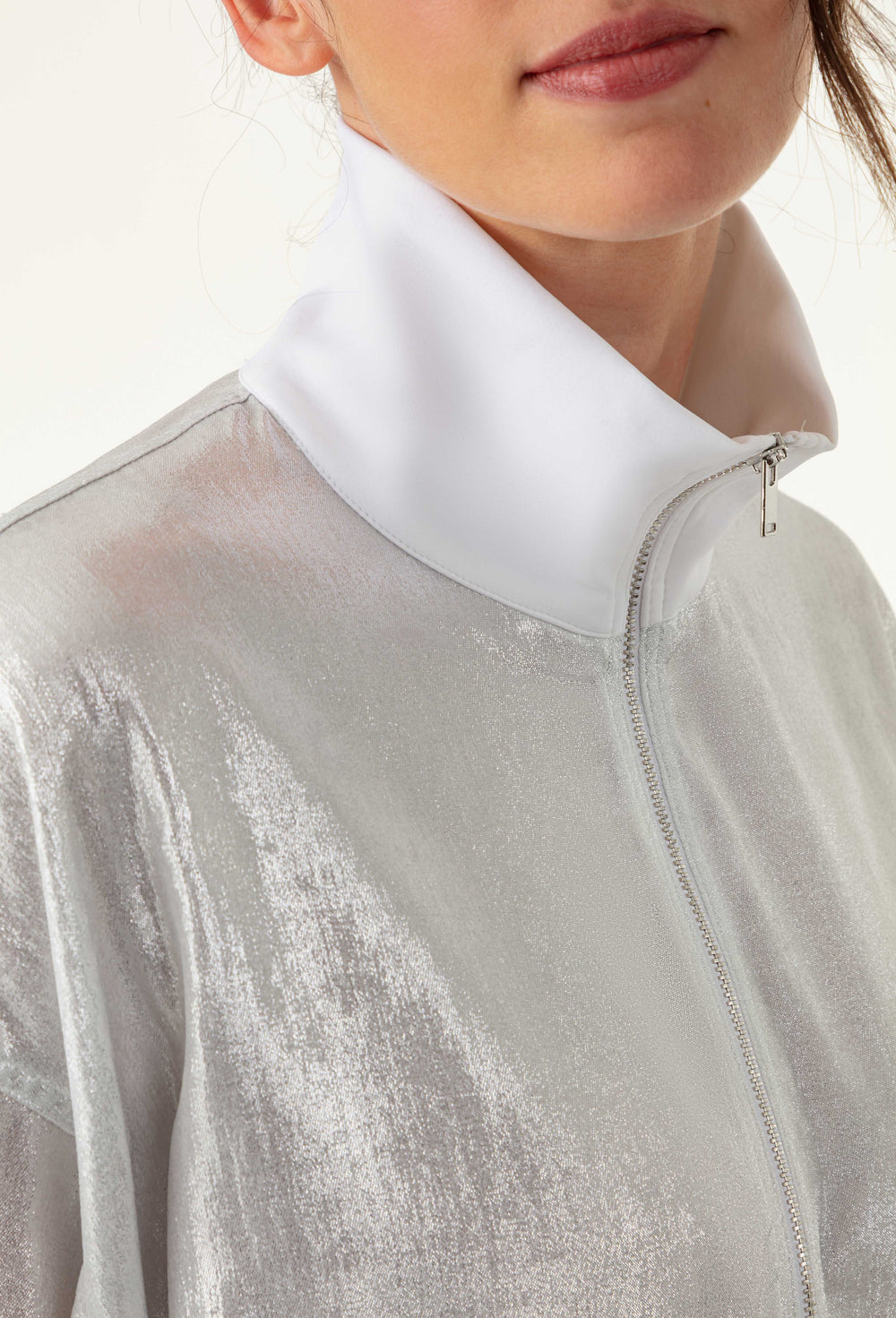 La mannequin mesure 1,73m et porte une taille 36.