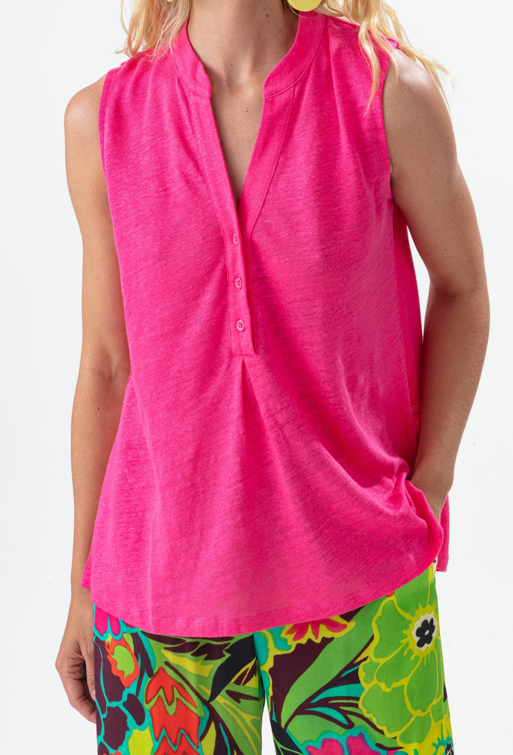 - Top sans manches en lin rose