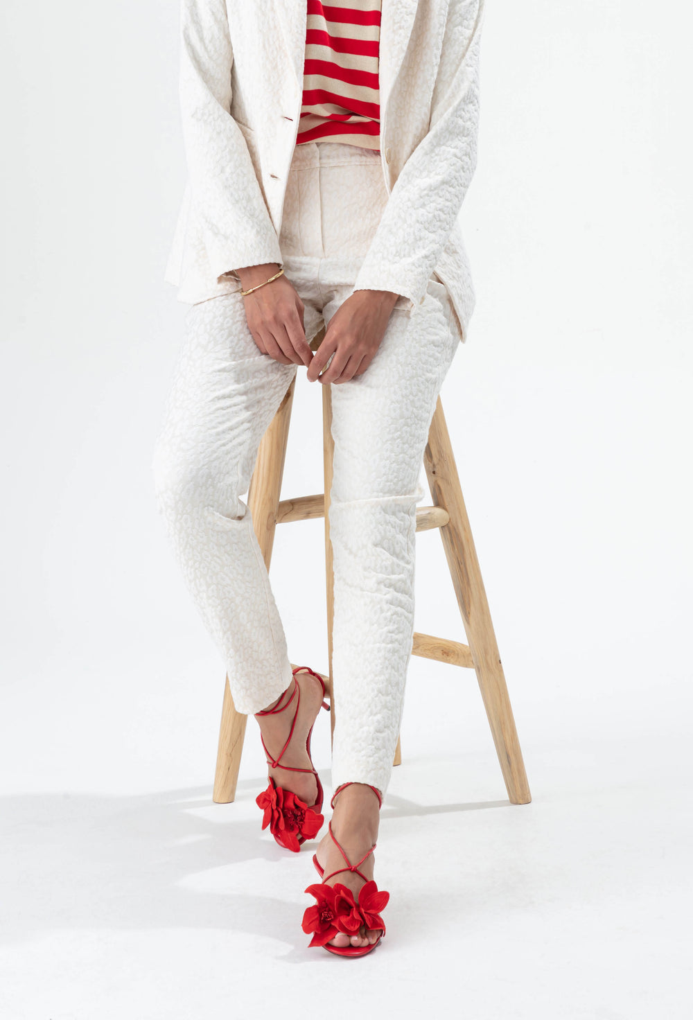 La mannequin mesure 1,77m et porte une taille 36.